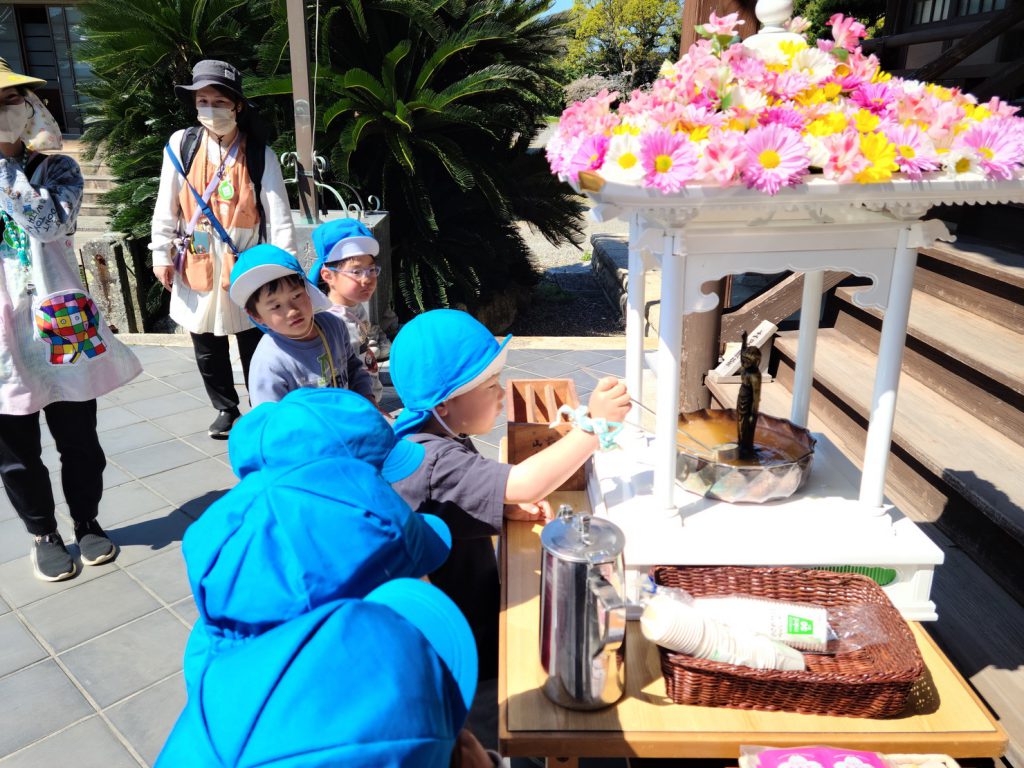 福江保育園の園児40名がお参りに来ました。